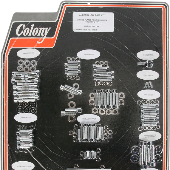 Caracteristicas: High-quality chrome-plated finish Kits include everything you need to mount rocker boxes, primary cover, lifter base, transmission covers, oil pump, air cleaner, cam cover, point cover timing plugs and motor mounts Fasteners for motor case and oil hose cover are also included Made in the U.S.A.