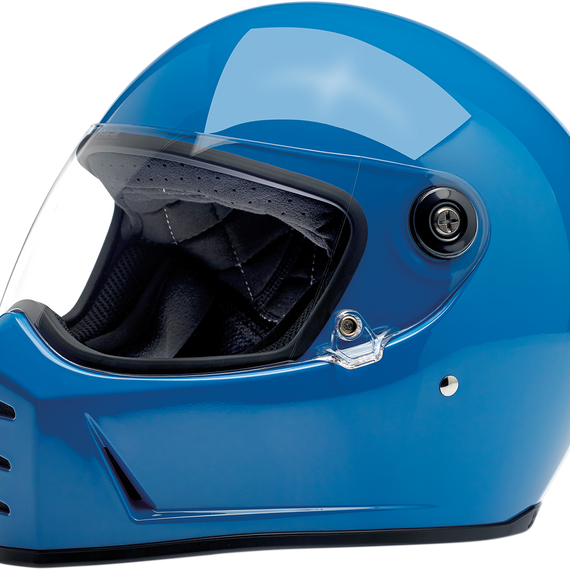 Caracteristicas: Biltwell proprietary ABS outer shell with hand-painted finish Shock-absorbing expanded polystyrene inner shell Hand-sewn removable brushed Lycra liner w/ contrasting diamond-stitched quilted open-cell foam padding Hand-stitched interior padding, cheek pads and Bio-Foam chin bar cushion for comfort Generous vents in the chin bar get the air flowing and the outlet in back lets hot air escape Shield boasts extremely accurate optics and simple hinge mechanics for high style and easy removal for replacement or cleaning Mesh pockets are included in the ear recess--perfect for aftermarket drop-in communication systems (not included) Injection-molded face shield with the same aluminum hinge covers and mounting hardware
