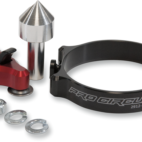 Caracteristicas: The Pro Circuit Launch Control device will compress the forks down a few inches from the normal seated position on the bike When locked down at the start of a race, more load will be placed on the front end instead of the rear, lessening the chance of a wheelie out of the gate Launch Control features a springless design that delivers positive engagement and consistent release Start trigger eases the setting and disengaging process CNC-machined out of aircraft-grade aluminum Lightweight design Made in the U.S.A.