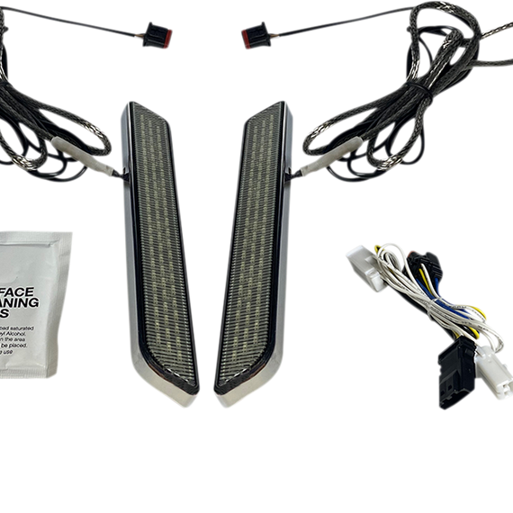 Caracteristicas: Replace the Harley-Davidson® OEM front fork reflectors on models with dual front brake calipers Super bright dual intensity amber LEDs, provide enhanced side visibility with run & turn functions to make you safer on the road Units are pre-taped to adhere in place of OEM reflector Plug and play wire harness for simple installation