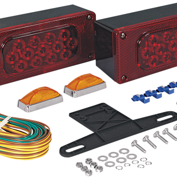 Caracteristicas: LED or Standard-style waterproof kits Contains two universal mount taillights with red side markers and reflectors, two seated amber side markers, license bracket, 25' wiring harness and all necessary hardware Dimensions 7-7/8" W x 3-1/4" L Replacement lights and lenses sold separately SAE/DOT/FMVSS/CMVSS compliant