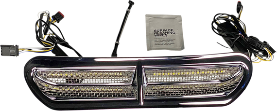 Caracteristicas: Dual color Genesis® 4 LEDs are packed behind each side of the mesh for visibility like never before Features white running light and amber turn signal Comes equipped with plug and play connectors for a simple installation