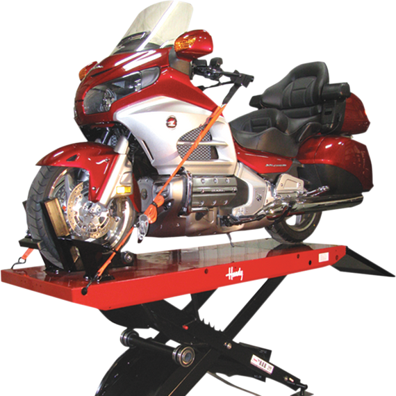 Caracteristicas: The B.O.B 1500 Air Lift solves numerous challenges in today's professional workshop Designed for the fully-dressed motorcycles, trikes and quads Lowers to a minimum height of 10" Includes a dropout for convenient tire changes Air source is 90-100 psi. Ramp measures 40" Weighs 560 lb.