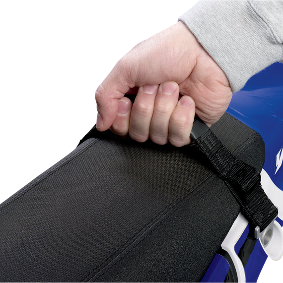Caracteristicas: Buckles and bushings are made from stainless steel Elastic tension keeps it snug and out of your way until you need to use it 1" webbing is strong, thick and easy to grab Double-weave buckle lets you adjust length to suit personal preference and accommodate taller seats or other modifications Fits nearly any bike that uses two bolts to attach the seat to the sub-frame (17" max length between the bolts) Also fits nearly all KTM models with the single under-fender seat bolt Multiple sizes of mounting hardware included