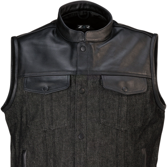 Caracteristicas: Premium full grain cowhide leather and heavyweight cotton denim chassis Metal snaps & concealed zipper front closure Two exterior chest pockets and two handwarmer pockets Two concealed carry pockets One-piece seamless leather back panel with zipper access for easy embroidery or patch application Polyester mesh liner wicks moisture