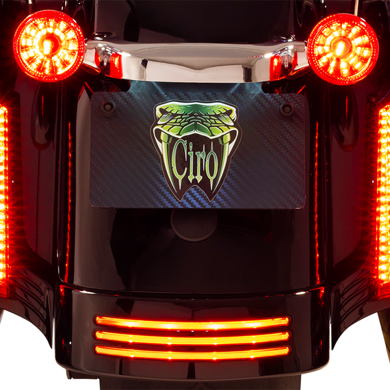 Caracteristicas: Smooth out the back of your bike to create a finished custom look Dramatically increase rear visibility Unique Ciro multi-function controller provides running, turn and brake light Plasma amber LED turn-signal technology creates an effect that can’t be missed Easy plug-and-play installation