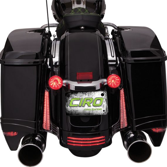 Caracteristicas: Designed to seamlessly fill the space between the bags and fender with a perfect fit Dramatically increase rear visibility Unique Ciro multi-function controller provides red running and brake lighting with amber turn signals Plasma LED turn-signal technology creates an effect that stands out even at great distance Easy plug and play installation