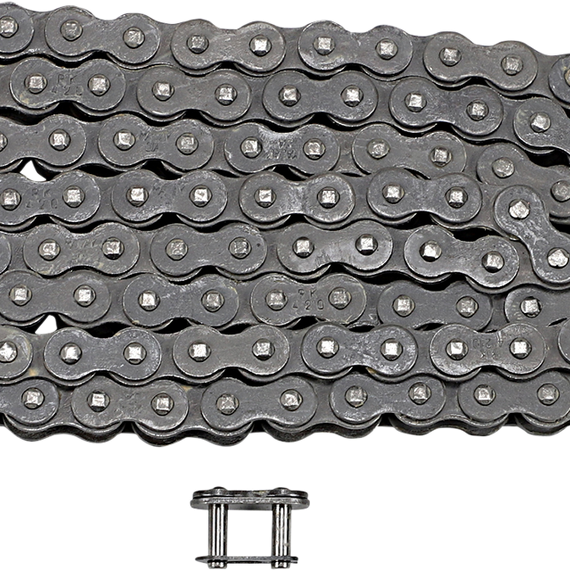 Caracteristicas: Heat-treated medium carbon alloy steel construction All components heat-treated and shot-peened for maximum strength Four-point pin riveting and solid rollers Chains include clip connecting link