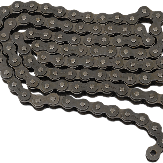 Caracteristicas: Heat-treated medium carbon alloy steel construction All components heat-treated and shot-peened for maximum strength Two-point pin riveting and solid rollers For motorcycles up to 400cc that did not come with an O-ring or heavy-duty chain as standard equipment Chains include clip connecting link