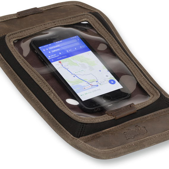Caracteristicas: The Magnetic Map Tank Screen is made from wet waxed UV treated cotton canvas CORDURA that will age and show character over time With its innovative stretch screen design, it will hold a vast array of smart phones, small tablets and even GPS units! The screen will stick directly to the gas tank via padded magnets (included with tank/tail bag or separately)