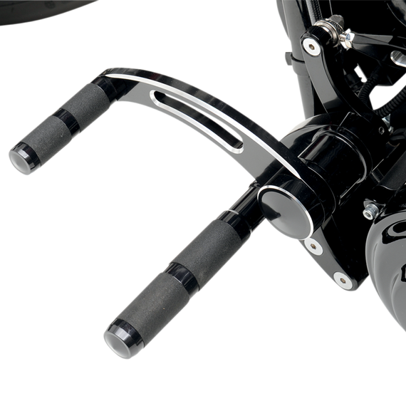 Caracteristicas: CNC-machined from 6061 T-6 aluminum 3/4" mounting plates for superior strength Feature sealed bearings on the pivot points for smooth operation and no maintenance Assembled with chrome hardware, kit comes ready to install Used with existing stock master cylinder Includes foot and toe pegs, mounting hardware and instructions Made in the U.S.A. When installing extended forward controls, check fender clearance before operating.