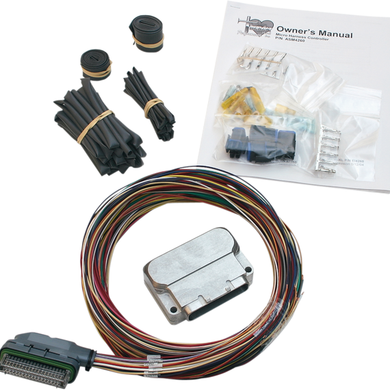 Caracteristicas: Billet 6061 T-6 aluminum housing and 7' trim-to-fit wiring design is compact and easily hidden on custom motorcycles Perform all fuse, relay (includes starter relay) and signal-canceling functions in one simple package Provide multiple flasher combinations (signal canceling, hazard lights, running lights and turn signal) from one dual-filament bulb Utilize relays to distribute all power functions, thus eliminating the need to run large wires to all the switches Can be used with micro switches Weather-resistant connections for trouble-free use in extreme environments Designed for U.S. and European applications Weighs 2.3 lb.