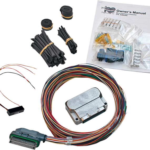 Caracteristicas: Billet 6061 T-6 aluminum housing and 7' trim-to-fit wiring design is compact and easily hidden on custom motorcycles Perform all fuse, relay (includes starter relay) and signal-canceling functions in one simple package Provide multiple flasher combinations (signal canceling, hazard lights, running lights and turn signal) from one dual-filament bulb Utilize relays to distribute all power functions, thus eliminating the need to run large wires to all the switches Can be used with micro switches Weather-resistant connections for trouble-free use in extreme environments Designed for U.S. and European applications Weighs 2.3 lb.