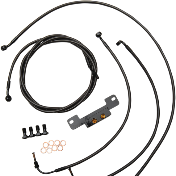 Caracteristicas: Standard kits include clutch line, brake lines, black "T" brake line junction, banjo bolts, fittings and copper crush washers Standard kits include the correct length brake/clutch lines and wire extensions to complete a handlebar swap Electrical wire extensions NOT included (available separately) Midnight series kits include clutch line and brake lines covered in a black smoke tinted coating with pure black fittings throughout Lines appear graphite or carbon fiber in appearance providing that ultra custom look and the black fittings seamlessly blend with blacked out controls and covers on the bike Made in the U.S.A. Kits are based on using 2" risers with Ape Hanger handlebars