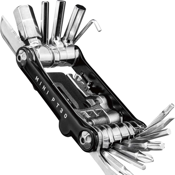 Caracteristicas: A pro-quality, precision mini tool containing 30 different functions designed to be a perfect fit for any road or trail-side repair It includes, Allen wrenches, a 10 mm hex socket, T10, T15, and T25 Torx® wrenches, 14G, 15G, Mavic M7, and Shimano® 4.5 mm spoke wrenches, #2 Phillips, flat head screw drivers, chain hook, tire reamer, saw, and disc spacer This tool comes equipped with integrated tubeless tire repair tools, removable chain tool with built-in master link tool for removing and installing master link type chains, a knife blade and plug insertion tool lock, extendable for leverage, secondary chain link fence, chain pin breaker, and master link storage compartment The chain tool is compatible with single and multi-speed chains up to 12 speed, NOT including Campagnolo® hollow pin chains Measures 2.9” x 1.6” x .7” Weighs 5.96 oz.