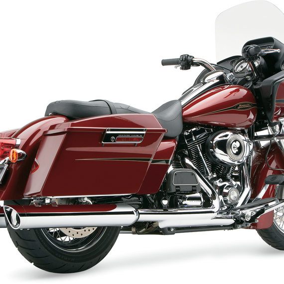 Caracteristicas: Increase horsepower and torque with a deeper, more aggressive exhaust note Welded from mild steel then bathed in a four-step chrome-plating process 4" muffler body uses a cooling chamber with proprietary technology to prevent blueing All necessary mounting hardware and instructions included, ensuring problem-free installation Made in the U.S.A.