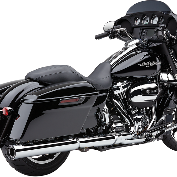 Caracteristicas: Increased horsepower and torque with a deeper, more aggressive exhaust note Welded from mild steel, then bathed in a four-step, chrome-plating process 4" muffler bodies use cooling chambers with proprietary technology to prevent bluing 4" Race Pro tips are held in place with seven, 12-point zinc-plated bolts Louvered core with light fiberglass wrap Made in the U.S.A.