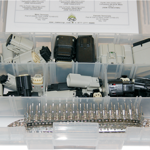 Caracteristicas: Builder kit neatly organizes Molex MX-150 components in one complete package Kit includes a storage bin, two gray and black 3-pin connectors, two gray and black 4-pin connectors, four black 6-pin connectors, eight gray 8-pin connectors, three black 12-pin connectors, three gray 16-pin connectors and 100 male and 100 female terminals Made in the U.S.A.