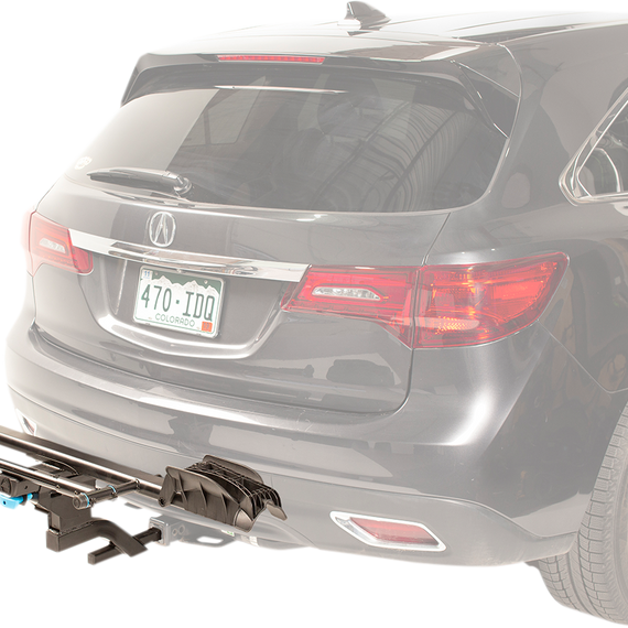 Caracteristicas: Carries one bike, up to 60 lbs (Expandable to two bikes up to 45 lbs each with separate Add-On kit - available from Rocky Mount) No contact with frame; secures bicycle by front wheel Carries road tires up to 5.0” fat bike tires, and diameters from 20” to 29” Compatible with bicycle wheelbases from 34” and 49” Folds flat against the vehicle, and tilts down 30 degrees to allow for hatch access Fits both 1.25” and 2” hitches with adapter sleeve & anti-wobble bolt Includes locking hitch pin, cable lock, and standard lock pods, keyed alike Metal components are EPD treated prior to powder coating to ensure weather and dirt resistance to help maximize the life of the rack Not for use with fender equipped bicycles Rack weight 25 lbs (shipping weight 35 lbs) For cargo vans a fit check is required. Depending on hitch manufacturer, handlebar width, vehicle wheelbase, and accessories an 8” Hitch Extension may be required for handlebars to clear door. For more information email ride@rockymounts.com.