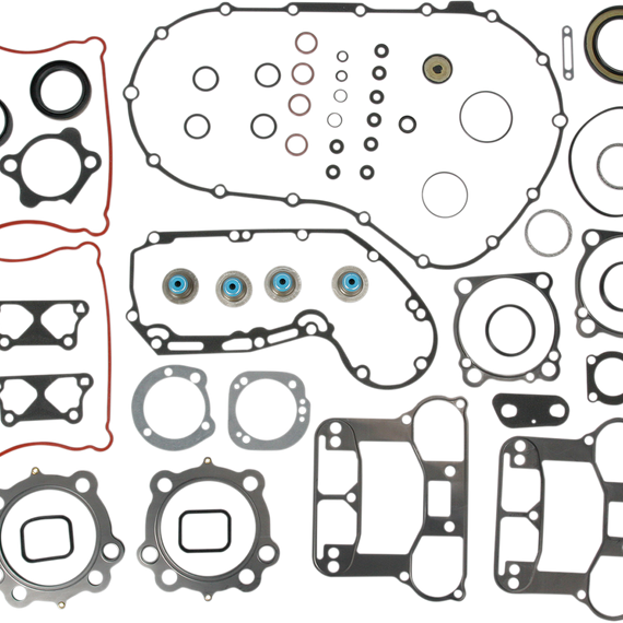 Caracteristicas: Every gasket in these kits uses the best materials possible for its intended application Multi-Layer Steel (MLS) head gaskets Steel Viton®-coated base gaskets Blue Viton valve stem seals Aluminum Foam Material (AFM) race-style exhaust gaskets Complete kits include motor gasket kit plus primary, derby and inspection cover gaskets Made in the U.S.A.