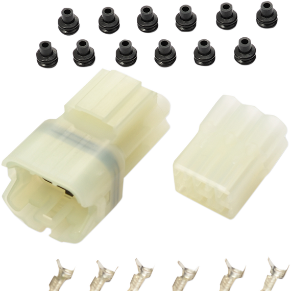 Caracteristicas: Include one male end, one female end and conductor pins Great replacement for repairing factory wiring harness, or for custom accessory wiring Water-resistant connectors feature rubber seals to prevent water from coming into coupler
