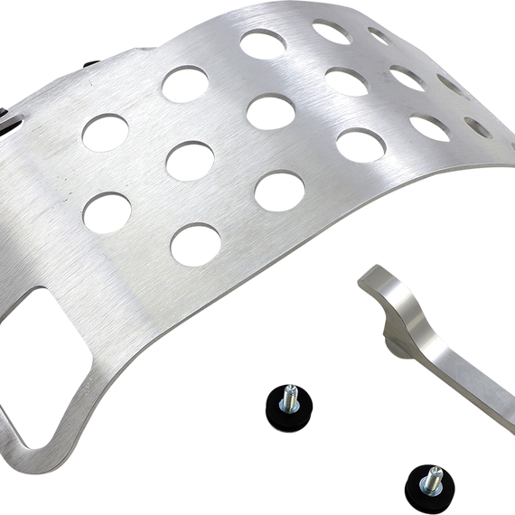 Caracteristicas: CNC-machined from aircraft-grade 6061 T-6 aluminum Specific design and fit for each make and model Covers to protect frame rails but does not extend beyond rails Oil drain access hole pre-cut into the plate for easy oil changes without having to remove the skid plate CNC-machined aluminum brackets with quality hardware for secure mounting Made in the U.S.A.