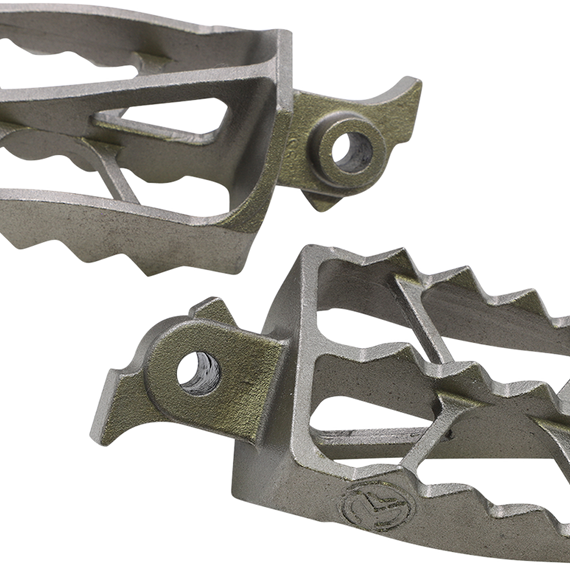 Caracteristicas: Constructed from cast, heat treated and hardened 17-4 stainless steel Made for the aggressive rider Made in U.S.A.