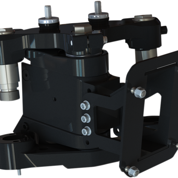 Caracteristicas: Manufactured from 6061-T6 billet aluminum and 4150 high-strength steel alloy Bolt-on 26†wheel installation Secure attachment and unmatched strength Proven press fit technology Compatible with factory suspensions using stock clearances Exceptional frame clearance, handling and stability Includes Black anodized Triple Tree Neck Kit, hardware, and installation instructions Raked necks change the handling characteristics of the motorcycle. Use caution until familiar with the changes.