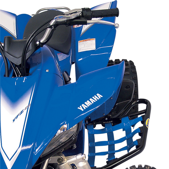 Caracteristicas: Manufactured from lightweight 1-1/4" extruded aluminum tubing Custom EZ-fit clamp brackets with silver anodized finish Wide 1-1/2" black webbing with beefy aluminum net tabs Sweep up from front to the rear for maximum ground clearance Maximum width of 50" to comply with ATVA rules Allows the use of OEM heel plate/fender extensions