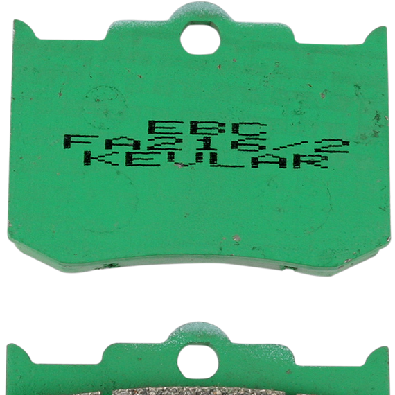 • EBC brake pads contain Aramid fibers, these are man-made high performance fibers, used widely for their light weight, high strength, abrasion resistance and thermal stability. They are used as reinforcements in ballistic protection (bullet---proof helmets and vests, vehicle armor), cut-resistant gloves, aircraft and marine structural parts, power transmission belts and of course friction products where their high strength to weight, thermal stability and abrasion resistance provide advantages over cheaper steel fiber based products.