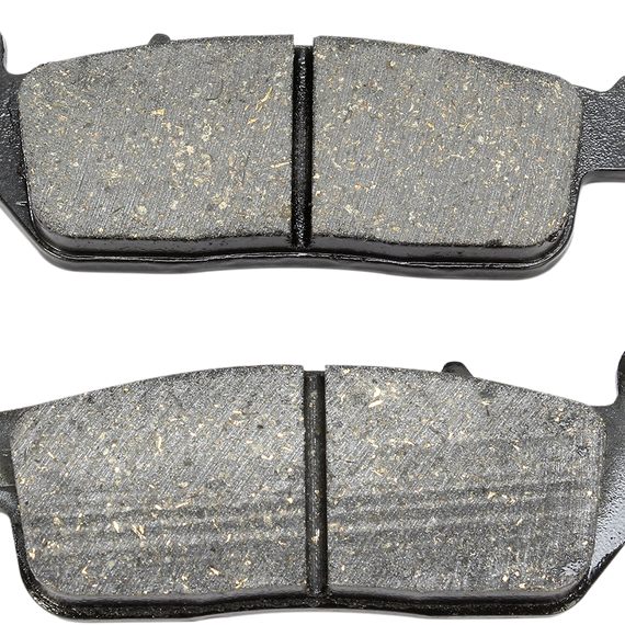Caracteristicas: Sintered metal brake pads are the OEM-type replacement pads for most bikes from the late 1970s to the present Sintered metal brake pads are proudly made in the U.S.A.; second-to-none in their stopping abilities and wear characteristics, while still providing excellent reduction in noise and dust Organic pads are OEM type replacement brake pads for 1970s and earlier models Organic pads with Aramid high-performance fibers are the perfect choice for polished or chromed rotors and billet steel rotors Both compounds of Drag Specialties brake pads are asbestos-, nickel- and lead-free Pads are 8 mm thick. If you are using aftermarket billet steel rotors, it is recommended you use our Organic pads with Aramid high-performance fiber brake pads to avoid damage to them. Sintered pads are not recommended for billet steel rotors as the pad material is too aggressive for those rotors.