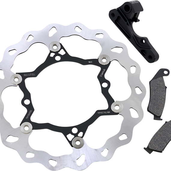 Caracteristicas: 270mm full-floating brake rotor Kit includes 6061-T6 aluminum relocating bracket and semi-metallic brake pads Designed for track, trail, and everyday use Best friction surface of any stainless steel brake rotor Full-floating Wave® blades ensure optimum pad-to-rotor contact for maximum stopping force and feel Seamlessly replaces stock brake rotor Extremely predictable and consistent Provides outstanding performance even in the most aggressive conditions Drastically increases lever feel, modulation and brake torque