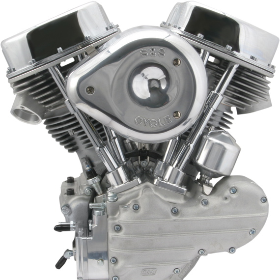 Caracteristicas: Natural crankcases and stock-looking silver powder-coated cylinders S&S hydraulic valve train with roller rocker arms S&S Super Stock ignition and billet timer Has correct length sprocket shaft for 1970-up primary and transmission Includes oil filter mount at generator location Accepts 66-84 exhaust systems 66-84 intake ports with O-ring inlets 93" displacement, 8.5:1 compression , 4-1/2" stroke, 3-5/8" bore