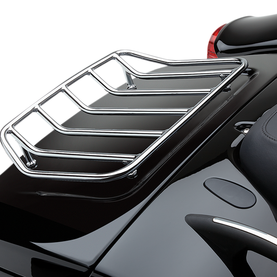 • Chrome plated, has an upward bend at the rear to secure items being bungeed or lashed onto it