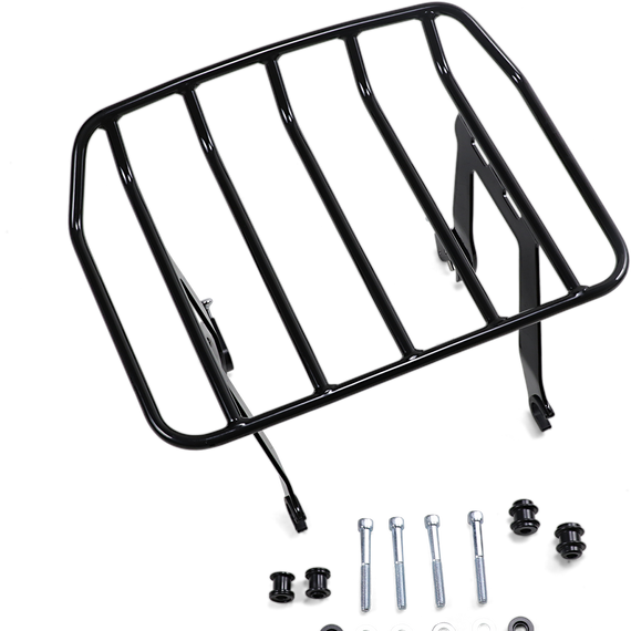 Caracteristicas: BA solo luggage rack is 30% larger than the standard rack Designed for use with OEM seats or some aftermarket seats Large detachable rack works seamlessly with detachable backrest Features a 2.5” kick up at the rear to help secure items Using Cobra’s proprietary release mechanism, it can be installed or removed in a matter of seconds Come with all mounting hardware A simple plunger type spring makes it simple to remove and install Uses Cobra’s proprietary release mechanism, allowing the rack to be installed/ removed in a matter of seconds Includes all mounting hardware Made in the USA Measures approximately 13" from front to back and 19" wide This rack can be used with or without a detachable backrest, but Cobra strongly suggests you use the Cobra docking hardware kit: available separately