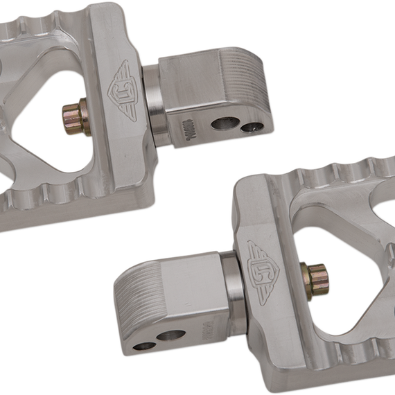 • Have an exclusive pitch adjustment screw that enables change to the angle of the peg in order to adjust it to a "level" riding position (if necessary) so the pegs don't appear to "lay down" with time, vibration, etc.