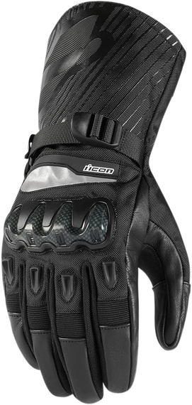 Caracteristicas: Icon Waterproofing Level 3 - good in heavy rain and wet snow Hipora® liner Comolded knuckles cover the backhand Integrated goggle wipe built into the thumb helps keep your shield clear