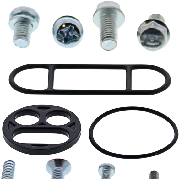 Caracteristicas: Includes components to rebuild one fuel petcock Kits include all necessary face screws, tank bolts, face gasket, tank gasket, diaphragm, o-rings, wave washer, and misc components