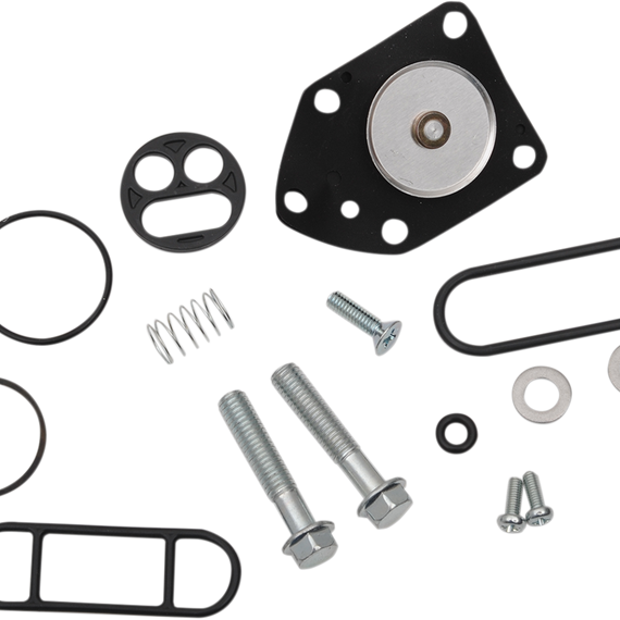 Caracteristicas: Includes components to rebuild one Fuel Tap Kits includes all necessary face screws, tank bolts, face gasket, tank gasket, diaphragm, o-rings, wave washer, and misc components Non re-buildable riveted Honda specific Kits include special drill and self-taping screws along with instructions for easy and inexpensive rebuild