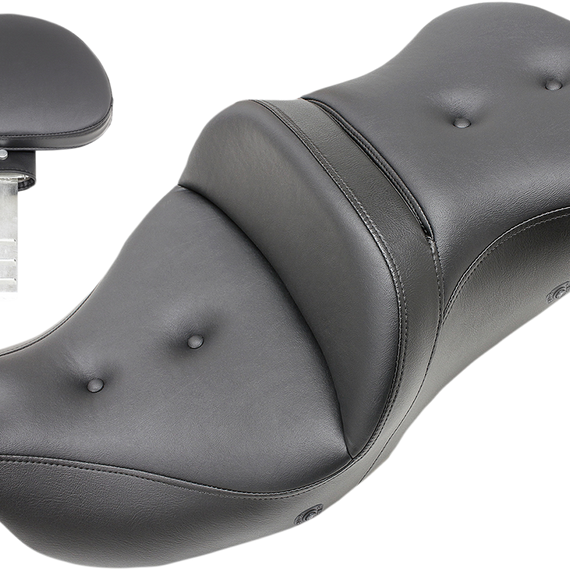 Caracteristicas: Refined split-cushion design separates the seating surface from the lumbar support to reduce tailbone/back pressure for maximum long-range comfort Seat features a combination of progressive density foam and SaddleGelƒ?½ inserts for superior driver and passenger comfort Pillowed soft upholstery cover backed by a compliant foam layer under the cover to provide incredible comfort and style Classic styled button-tufted cover Made in the U.S.A.