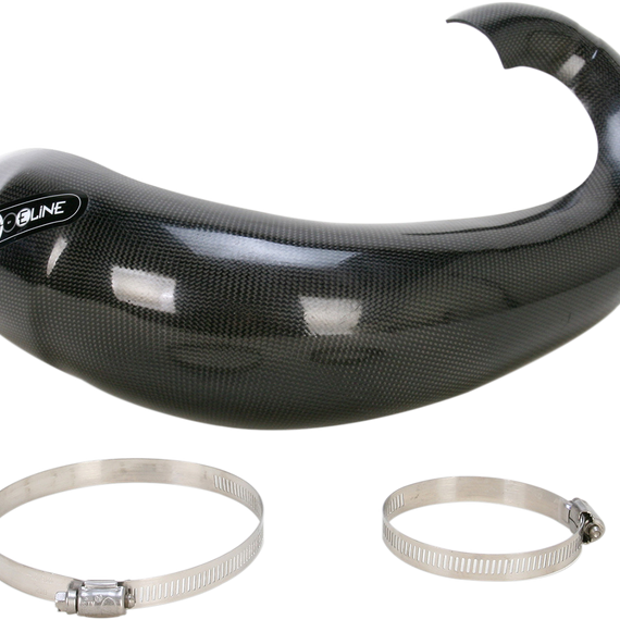 Caracteristicas: Custom molded to fit perfectly every time. Carbon fiber, anti-ballistic composite material, fiberglass, and high temp resins yield an exceptional guard The lightweight composite has 75% greater tensile strength than aluminum Protects exhaust pipes from power robbing dents and increases house-power by elevating gas flow temperature
