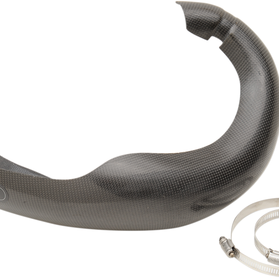 Caracteristicas: Custom molded to fit perfectly every time. Carbon fiber, anti-ballistic composite material, fiberglass, and high temp resins yield an exceptional guard The lightweight composite has 75% greater tensile strength than aluminum Protects exhaust pipes from power robbing dents and increases house-power by elevating gas flow temperature
