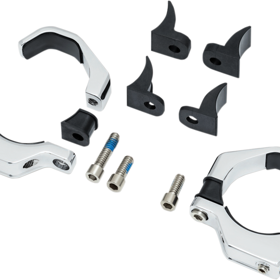 Caracteristicas: Easy installation on 39mm up to 49mm fork tubes Perfect for mounting any Kuryakyn or aftermarket turn signals using M8-1.25 threaded stud The unique clamping system adjusts to fit 39mm up to 49mm fork tubes and accepts any aftermarket turn signals using an M8-1.25 threaded stud