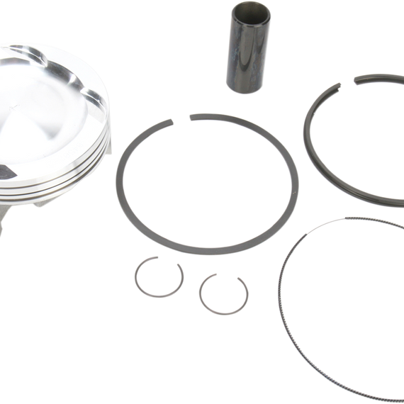 Caracteristicas: Quality and construction that meets or exceeds OEM Feature improved E-clip design Contain piston, rings, pin and clips Additional rings available separately Order one per cylinder Skirts have a nonabrasive, expansion-retarding MOS2 coating to reduce heat and friction for added power and longevity MOS2 coating actually draws heat through piston walls and out the bottom Specially hardened tops add strength to ring grooves