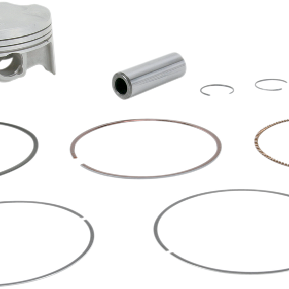 Caracteristicas: Quality and construction that meets or exceeds OEM Feature improved E-clip design Contain piston, rings, pin and clips Additional rings available separately Order one per cylinder Skirts have a nonabrasive, expansion-retarding MOS2 coating to reduce heat and friction for added power and longevity MOS2 coating actually draws heat through piston walls and out the bottom Specially hardened tops add strength to ring grooves