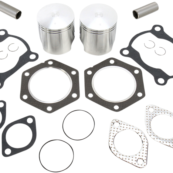 Caracteristicas: Most Wiseco 2-cycle pistons are forged from high-silicone bar stock Greater strength and lower expansion at high temperatures Complete piston kits include High-Performance forged pistons, rings, wrist pins, circlips and top-end gasket kit for one complete engine All Wiseco High-Performance pistons are priced with rings, wrist pins and circlips Wiseco ring types are not interchangeable (i.e., CD is not interchangeable with LC) and fit only Wiseco pistons WARNING: Wiseco pistons can be fitted only with Wiseco rings.