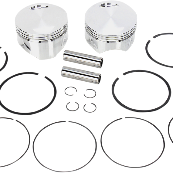 Caracteristicas: All piston kits come with two pistons, rings, wrist pins, and wrist pin keepers Compression ratios listed are approximate and are calculated using the correct length cylinders as specified by S&S Require the use of connecting rods with a rod length of 7.440"; Use of earlier connecting rods with a rod length of 7.470" will result in a slight increase in the compression ratio of about 1/2 point, and may also result in clearance problems (check all piston to cylinder head clearances carefully when using the early style rods)