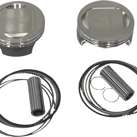 • Include pistons with skirt coating, rings, chrome piston pins and retainer clips