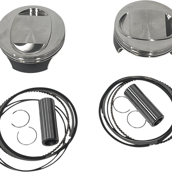 Caracteristicas: Top-quality custom-forged piston kits manufactured with high-strength aluminum alloy Include pistons with skirt coating, rings, chrome piston pins and retainer clips High-tech manufacturing ensures greater operating strength and lower expansion at high temperatures High-tension compression rings with 3mm oil scrapper rails Offset pin design for smoother operation Replacement ring sets sold as a set for one piston Made in the U.S.A.