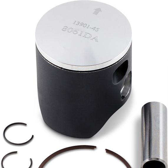 Caracteristicas: Two-stroke pistons are made from 4032 silicium Four-stroke pistons are made from 2618 silicium - the same material used to produce Formula 1 pistons Both include 3% copper in materials for better heat resistance All pistons are forged using a precision heat-treatment process that allows for production tolerances of just .005mm Forged piston tooling allows for the lightest available product Kits include antiwear coated piston, rings, pin and circlips